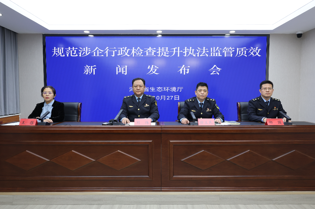 10月27日,酒店直播 召开“规范涉企行政检查 提升执法监管质效”新闻发布会。厅生态环境执法局局长刘炜介绍全省生态环境系统规范涉企行政检查,提升执法监管质效的有关情况。厅生态环境执法局副局长郝园、厅生态环境执法局三级调研员徐义民分别就“我省生态环境系统在规范涉企行政检查方面做了哪些工作、2025年执法大练兵活动的创新与亮点、在行政执法检查中为服务企业发展具体做了哪些努力”等问题回答记者提问。发布会由厅科技与宣传教育处副处级干部王蓓主持。