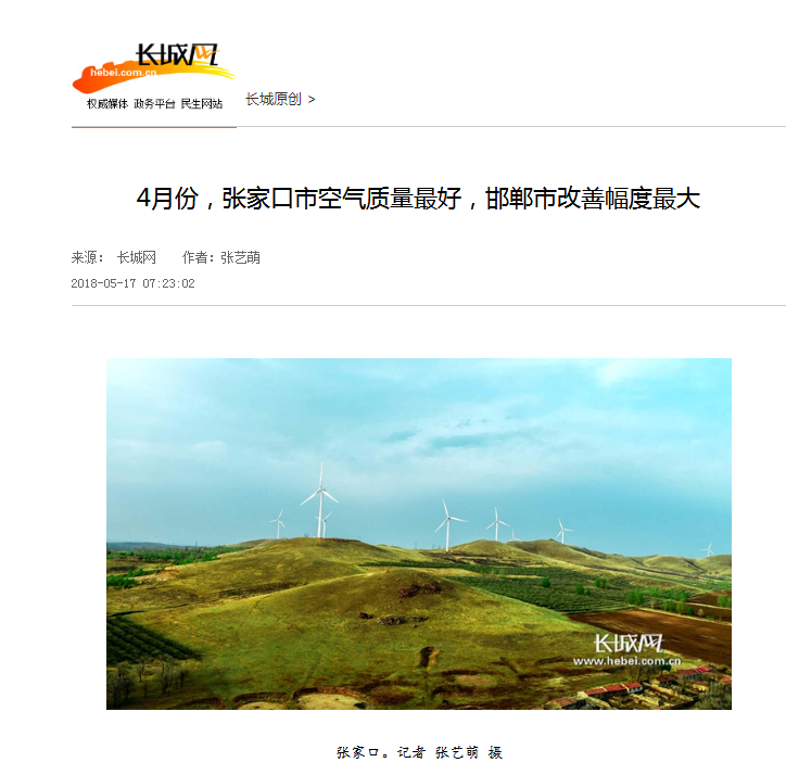 长城网:4月份,张家口市空气质量最好,邯郸市改善幅度最大