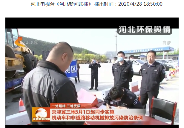 河北电视台《河北新闻联播》:一处超标 三地受限 京津冀三地5月1日起同步实施 机动车和非道路移动机械排放污染防治条例 来源:省生态环境宣传教育中心 时间:2020-04-30