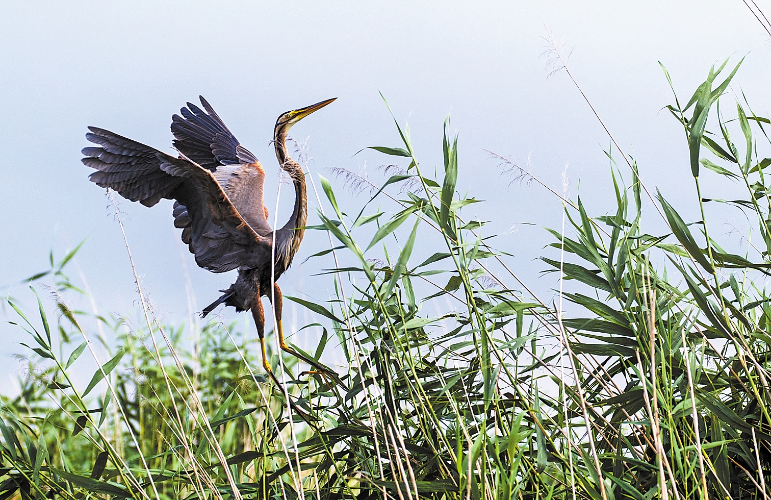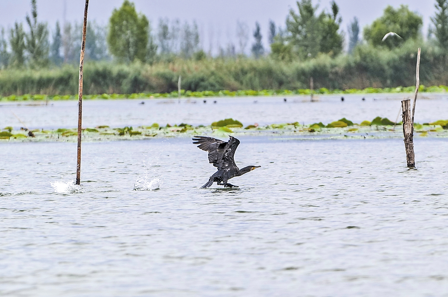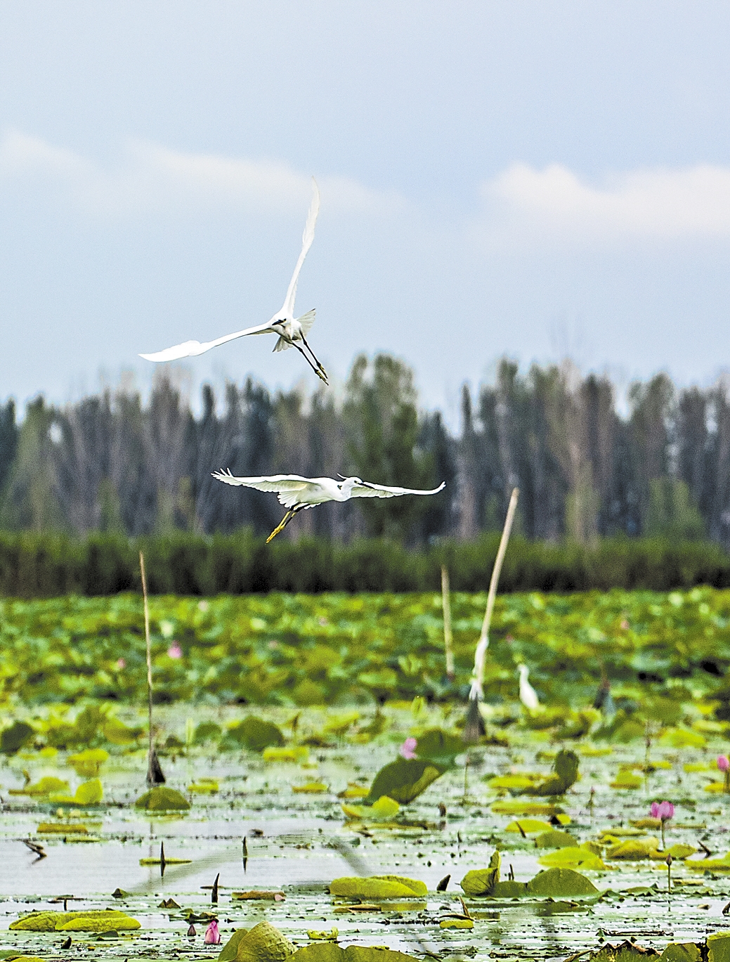 焕发新机的白洋淀,再现“荷塘苇海、鸟的天堂”胜景。图为2022年7月10日,白洋淀上的野生鸟类。