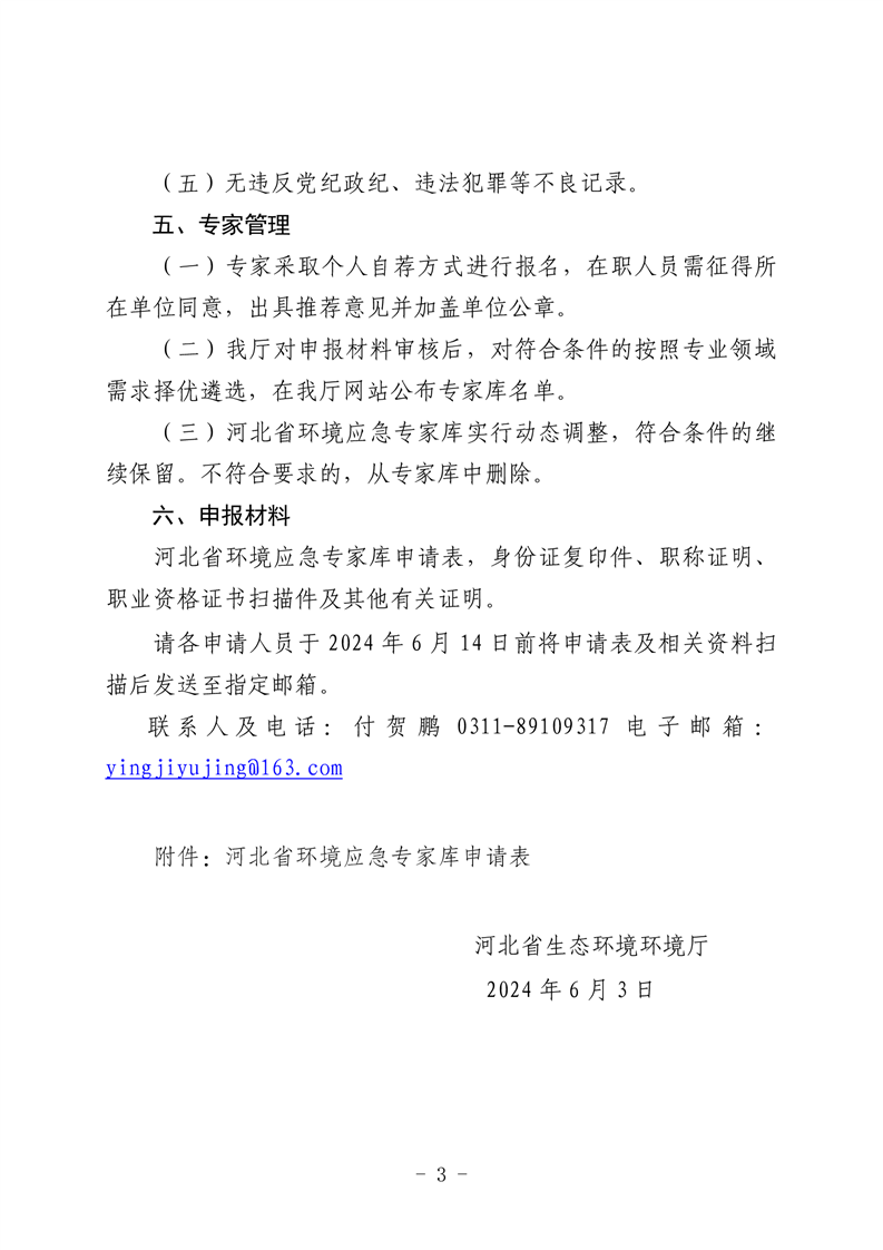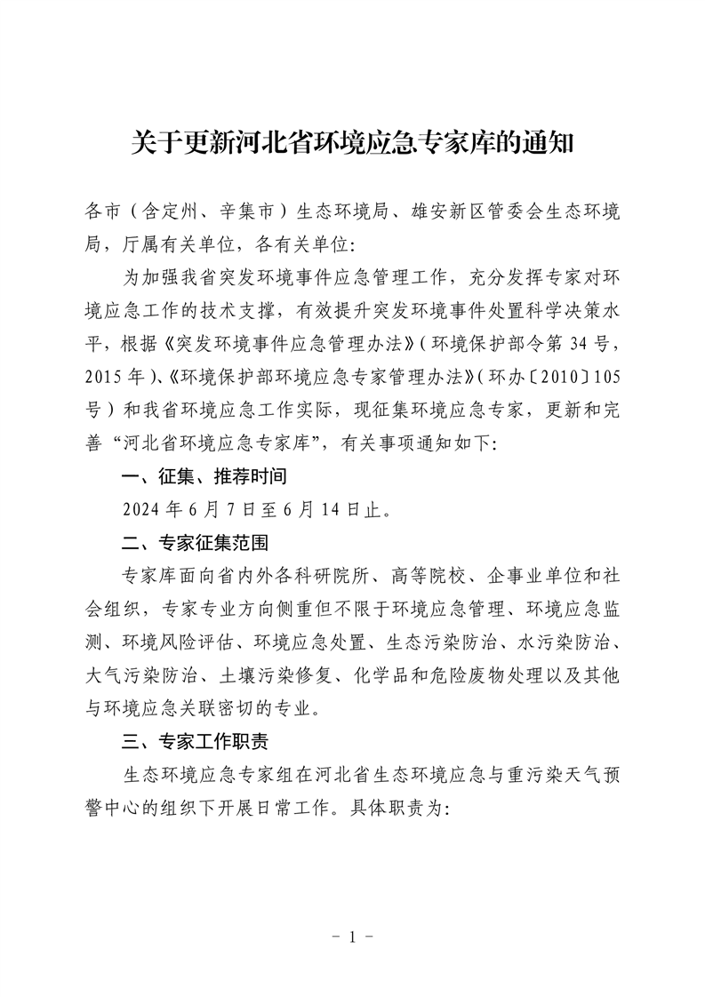 关于更新河北省环境应急专家库的通知