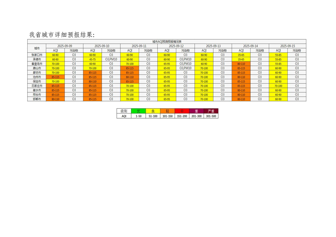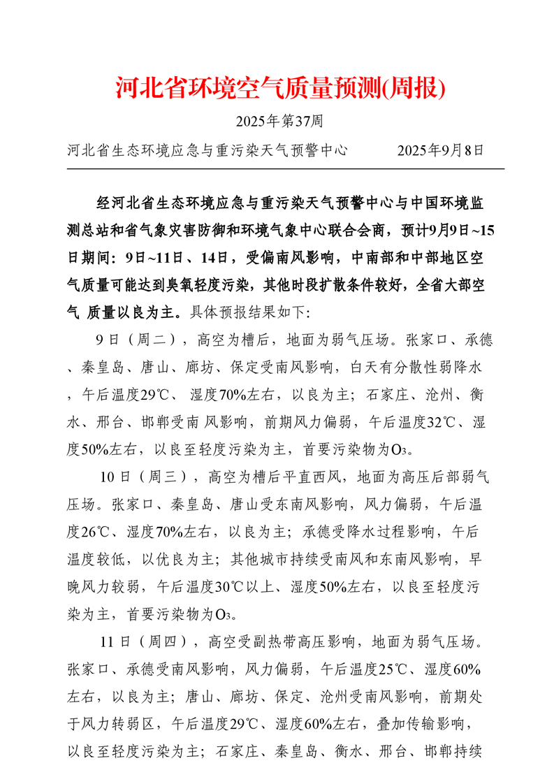 河北省空气质量预测报告(周报)2025年第37周