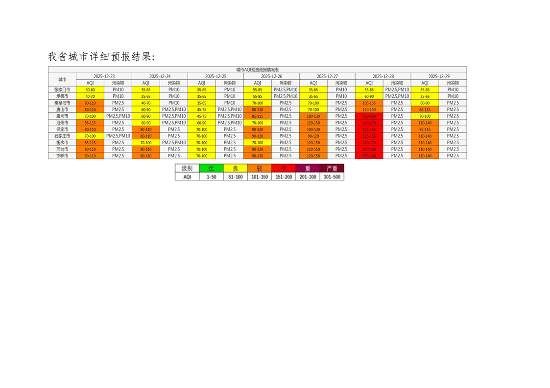 河北省空气质量预测报告周报2025年第52周