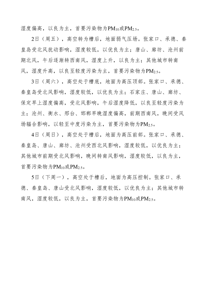 河北省空气质量预测报告(周报)2026年第1周